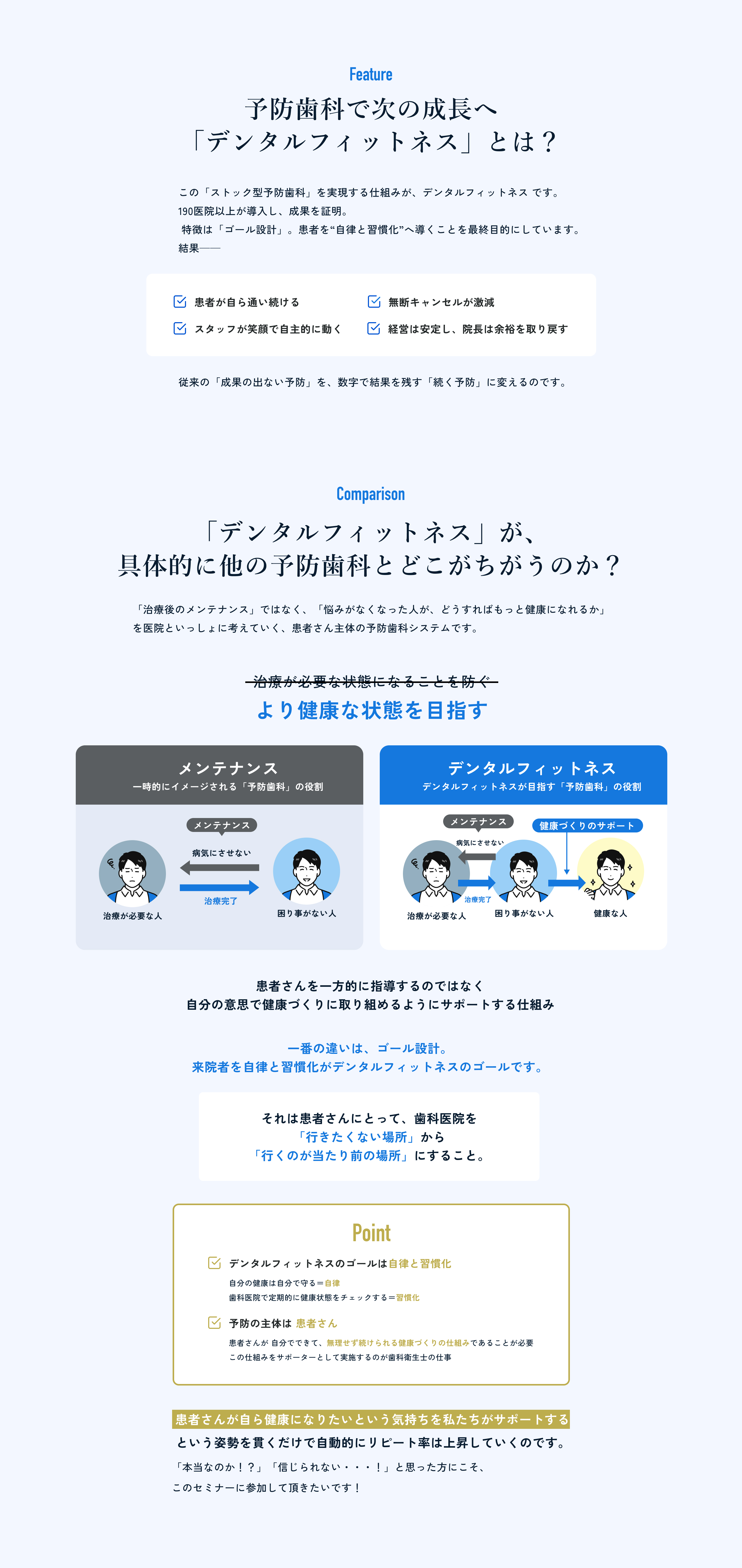 多くの患者さまは、予防の価値や定期健診の意味を十分に理解していません。説明だけでは伝わらない部分があります。行動につながる仕組みを整えることで、自然に継続して通っていただけるようになります。